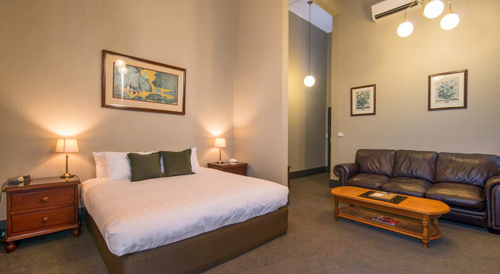 Traditional rooms with Lounge are located on the ground and first floors of the hotel reflect the period and charm of the Vue Grand. Offering additional space than the traditional room, these rooms are ideal for twin share guests, couples travelling with a child. Includes a hot breakfast for two people.